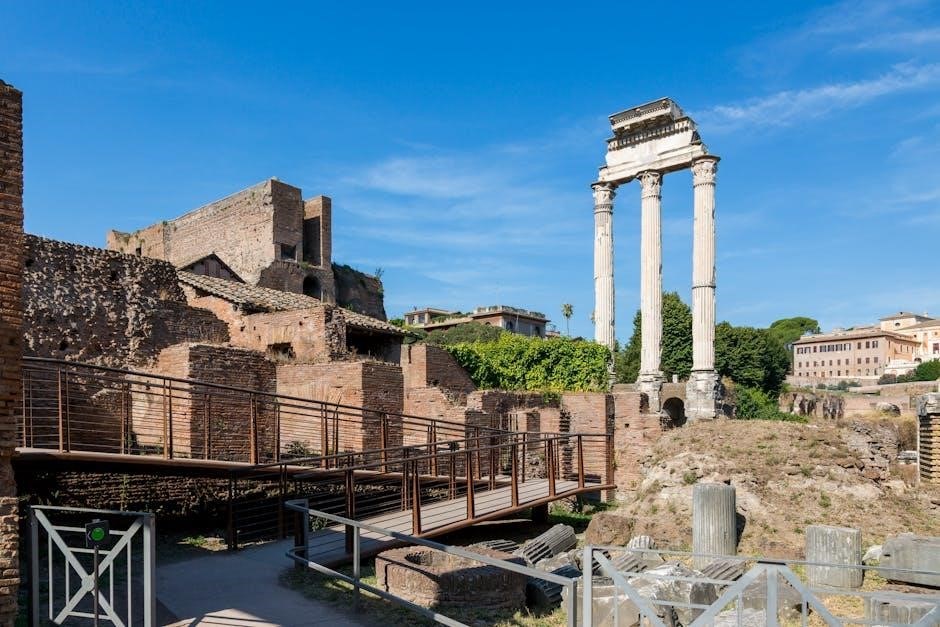 The extensive Roman road network, spanning thousands of miles, connected distant provinces, bolstering military logistics and economic integration․ Architectural marvels such as the Colosseum and Pantheon demonstrate sophisticated design and construction techniques․ These achievements continue to inspire and influence modern engineering and architectural practices worldwide, showcasing lasting Roman ingenuity․