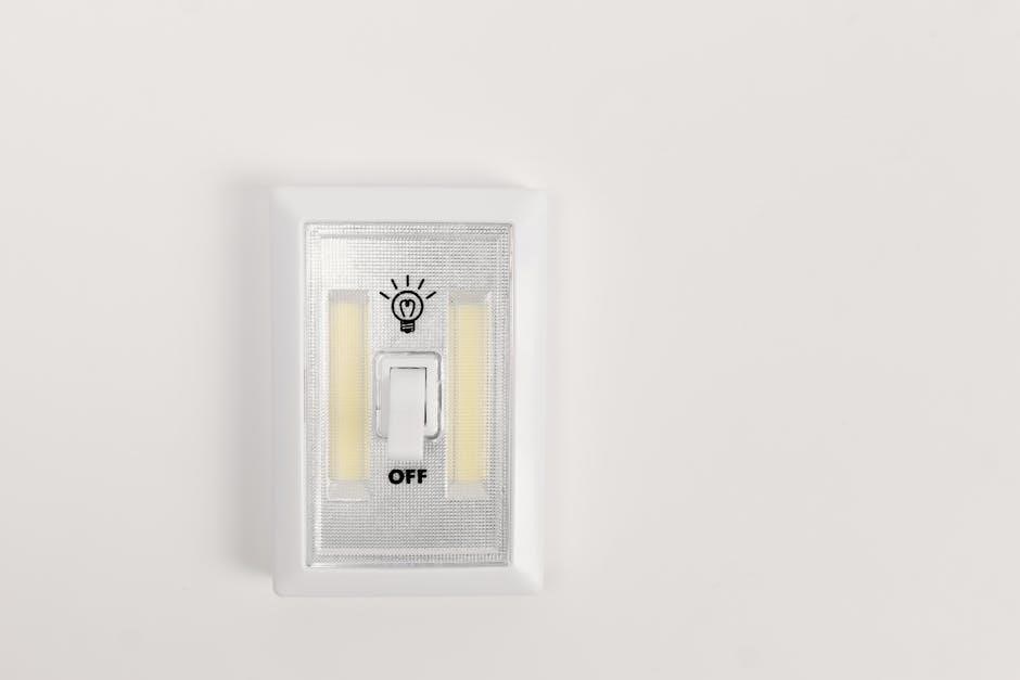 This setup provides continuous, low-level illumination during emergencies or nighttime, independent of motion detection. It’s a practical solution for hallways, bedrooms, or areas requiring constant visibility, offering peace of mind and improved safety features within your home’s lighting system.
