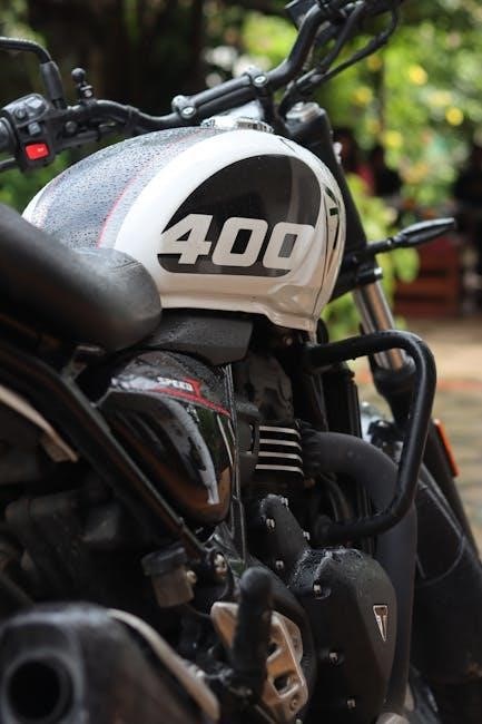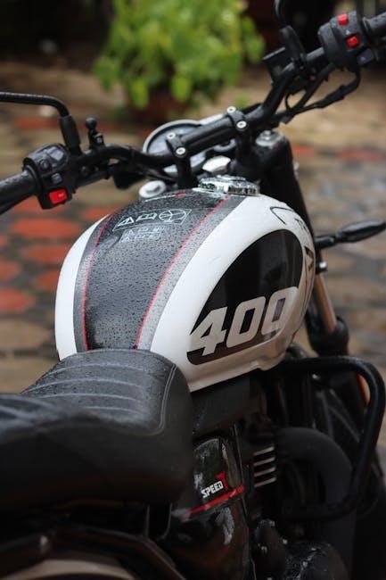 The Triumph Speed 400 shop manual is essential for owners and technicians, providing detailed guidance for maintaining and repairing this modern classic motorcycle.